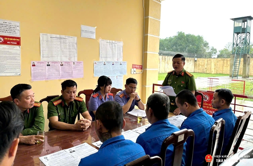 | Buổi làm việc tại Phân trại tạm giam Phong Điền. |