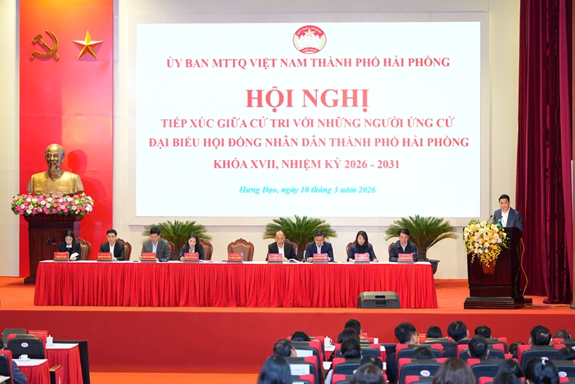Sáng 10/3, tại trụ sở phường Hưng Đạo, Ủy ban MTTQ Việt Nam TP Hải Phòng tổ chức Hội nghị tiếp xúc cử tri với những người ứng cử đại biểu HĐND TP Hải Phòng khóa XVII, nhiệm kỳ 2026–2031 thuộc Đơn vị bầu cử số 9. Hội nghị được kết nối trực tuyến tới các phường, đặc khu gồm: Dương Kinh, Đồ Sơn, Nam Đồ Sơn, Hải An, Đông Hải, Cát Hải và Bạch Long Vỹ.