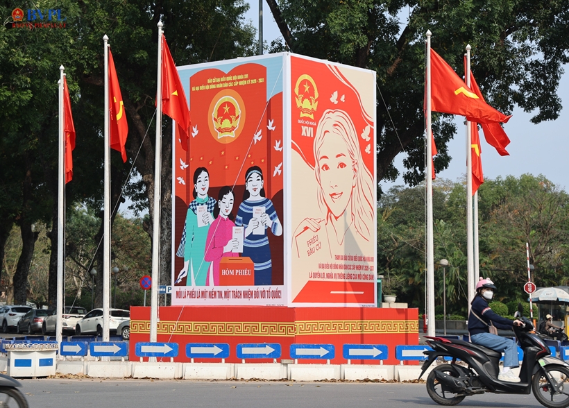 Chỉ còn vài ngày nữa cử tri cả nước đi bầu cử đại biểu Quốc hội khóa XVI và đại biểu HĐND các cấp nhiệm kỳ 2026 - 2031. Những ngày này, khắp các tuyến phố của Hà Nội như khoác lên mình "tấm áo mới" rực rỡ sắc màu.