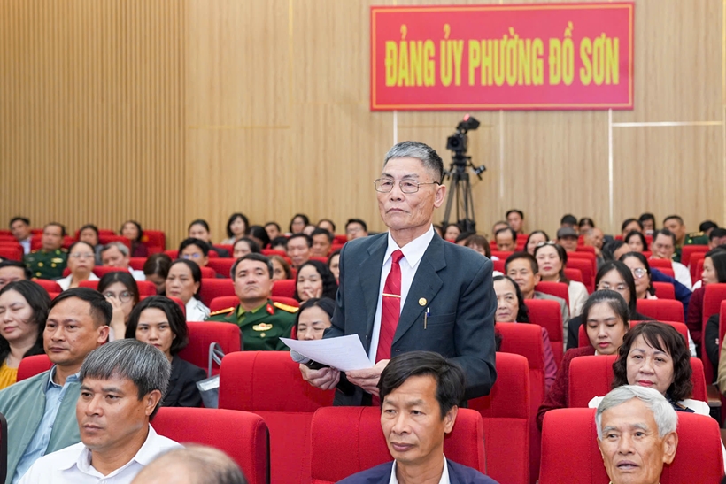 | Cử tri phường Đồ Sơn phát biểu ý kiến tại Hội nghị. Ảnh: ĐT |