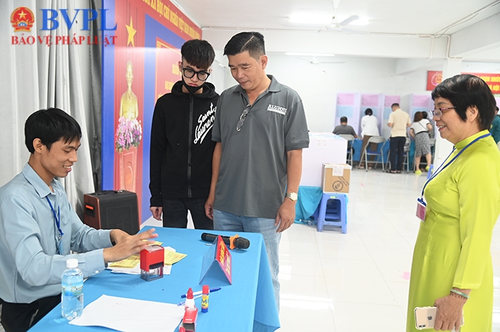 | Quá trình bầu cử, cử tri được cán bộ Tổ bầu cử hướng dẫn tận tình, chu đáo. Ảnh: NH. |