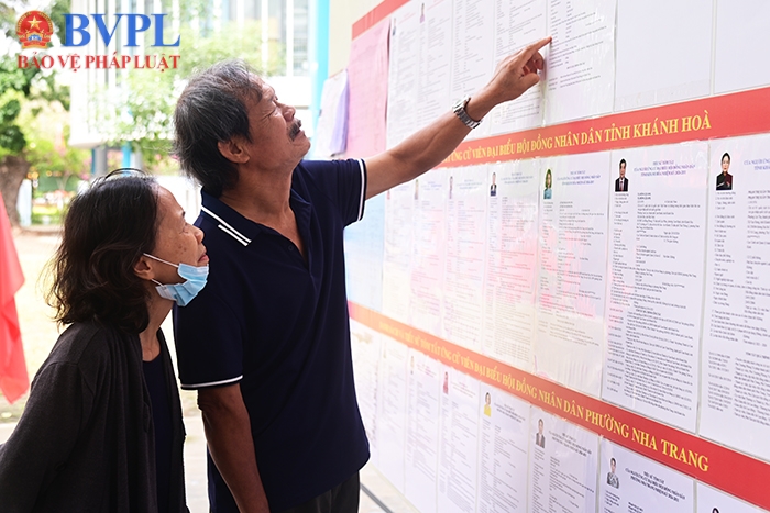 | Cử tri phường Nha Trang, Khánh Hòa nghiên cứu tiểu sử người ứng cử. Ảnh: NH. |