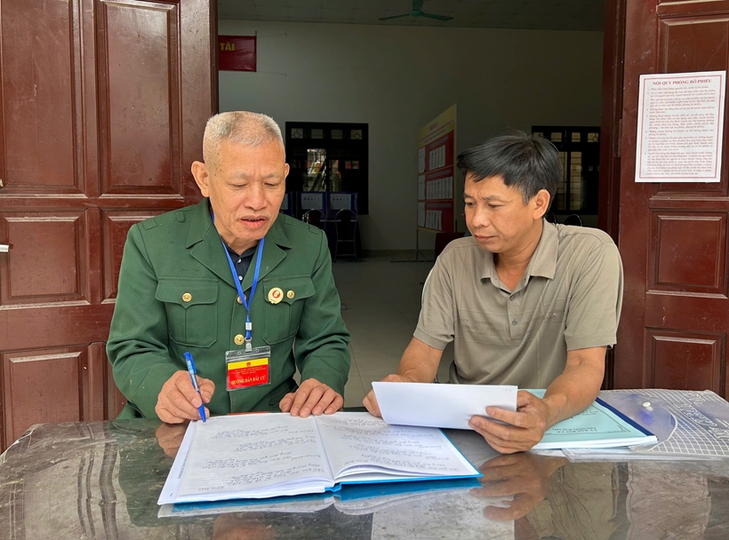 | Ông Đào Văn Sơn tiến hành rà soát danh sách cử tri. |