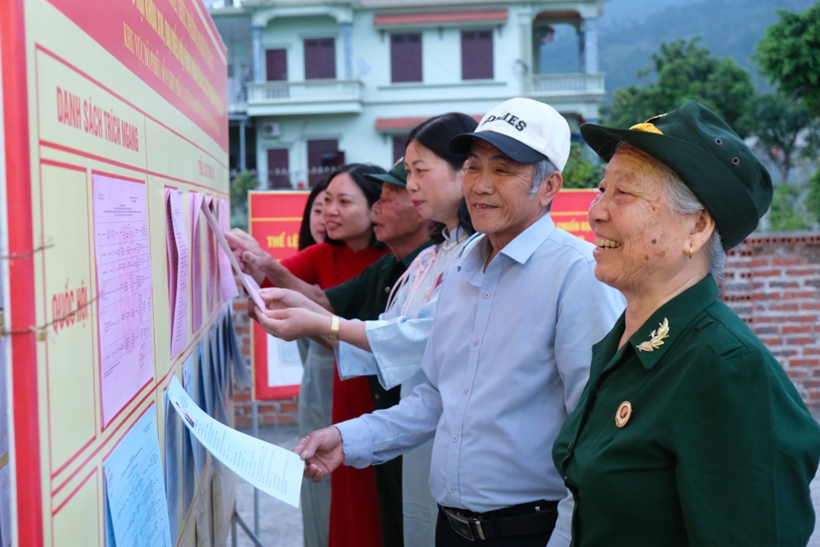 | Cử tri tại một số điểm bầu cử xem lại danh sách ứng cử viên trước khi bỏ phiếu. Ảnh: QMG |