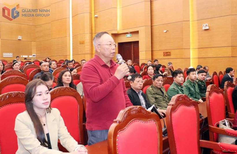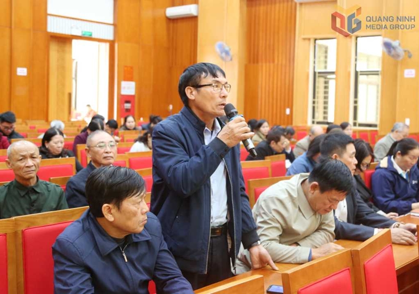 | Cử tri đặc khu Vân Đồn phát biểu tại buổi tiếp xúc. Ảnh: QMG |