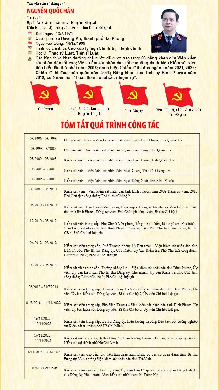 | Đồng chí Nguyễn Quốc Hân, Viện trưởng VKSND tỉnh Đồng Nai ứng cử Đại biểu HĐND tỉnh khóa XI, nhiệm kỳ 2026 - 2031. |
