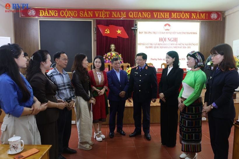 | Đồng chí Trần Thế Kính, Tỉnh ủy viên, Bí thư Đảng ủy, Viện trưởng VKSND tỉnh Thanh Hóa cùng các ứng cử viên Đại biểu Quốc hội khóa XVI cùng trao đổi với cử tri xã Thường Xuân, tỉnh Thanh Hóa. |