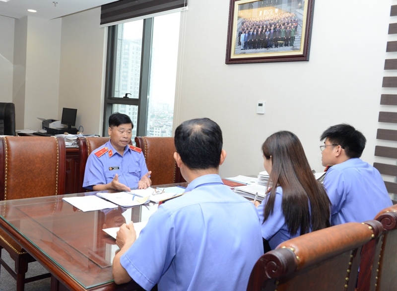 | Lãnh đạo Thanh tra VKSND tối cao trao đổi nghiệp vụ với cán bộ, công chức trong đơn vị |