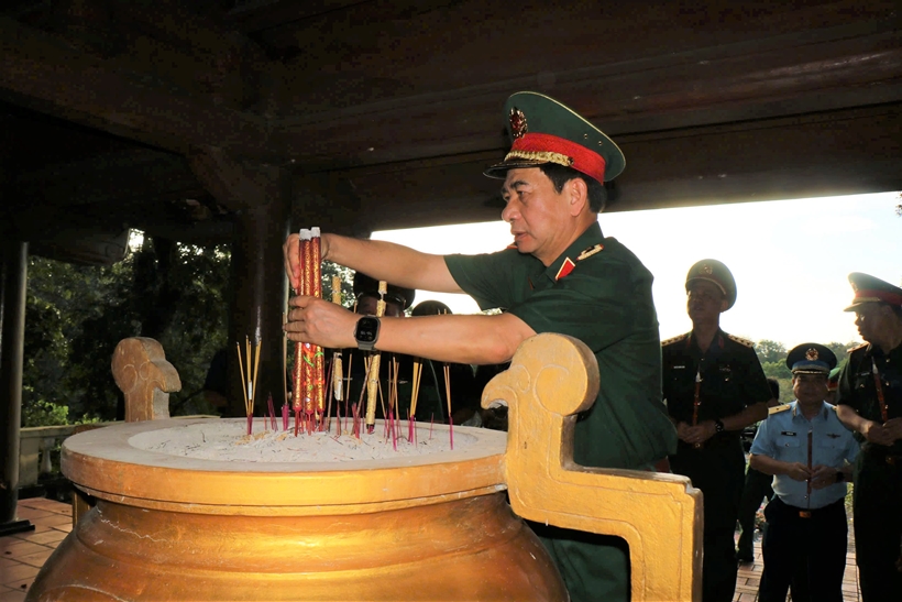 | Đại tướng Phan Văn Giang, Ủy viên Bộ Chính trị, Phó Bí thư Quân ủy Trung ương, Bộ trưởng Bộ Quốc phòng Việt Nam thắp hương tưởng nhớ các Liệt sĩ. |