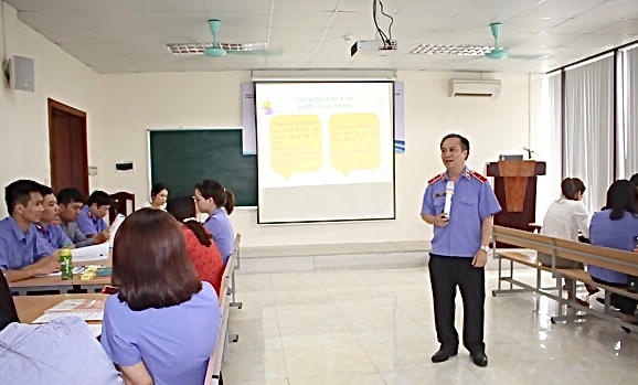 | TS. Nguyễn Đức Hạnh, Phó Hiệu trưởng Trường Đại học Kiểm sát Hà Nội giới thiệu một số nội dung tại khóa tập huấn. |