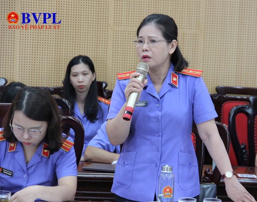 | Đồng chí Đoàn Thị Thu, Trưởng phòng 2, Vụ 9 VKSND tối cao giải đáp và nêu ý kiến về vấn đề về quy trình số hóa hồ sơ các vụ án dân sự, hành chính. |