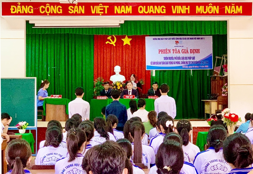 Thực hiện Đề án “Tăng cường công tác phổ biến, giáo dục pháp luật nhằm nâng cao ý thức pháp luật cho thanh thiếu niên” trên địa bàn huyện Cai Lậy, tỉnh Tiền Giang, vừa qua Chi đoàn khối Đảng, Đoàn thể và Chi đoàn khối Chính quyền huyện Cai Lậy phối hợp với Đoàn trường THPT Phan Việt Thống tổ chức phiên tòa giả định tuyên truyền pháp luật.