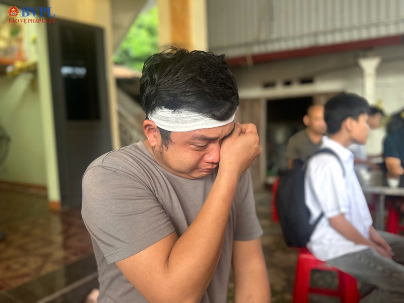 Con trai thứ ông Hùng khóc nghẹn khi kể về bố. |