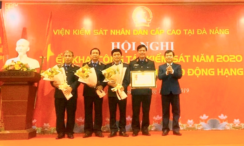 | Thừa ủy quyền Chủ tịch nước, Viện trưởng Lê Minh Trí trao Huân chương lao động hạng Nhất cho VKSND cấp cao tại Đà Nẵng tại Hội nghị triển khai công tác năm 2020 của đơn vị. |