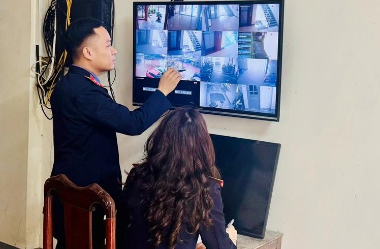 | Cán bộ Phòng Thanh tra - Khiếu tố kiểm tra việc chấp hành kỷ luật công vụ qua camera giám sát của đơn vị. |
