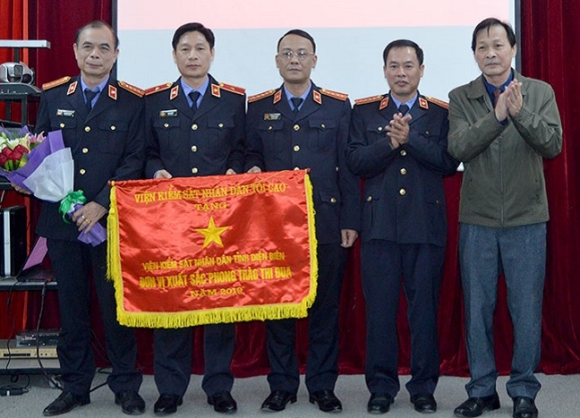 | Thừa ủy quyền của Viện trưởng VKSND tối cao, đồng chí Lê Trọng Khôi, Phó Chủ tịch HĐND tỉnh trao Cờ thi đua xuất sắc năm 2019 cho VKSND tỉnh Điện Biên. |