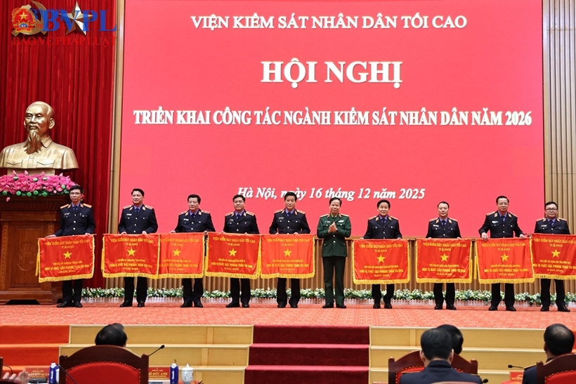 | Viện trưởng VKSND tỉnh Lâm Đồng nhận Cờ thi đua ngành Kiểm sát nhân dân năm 2025. |