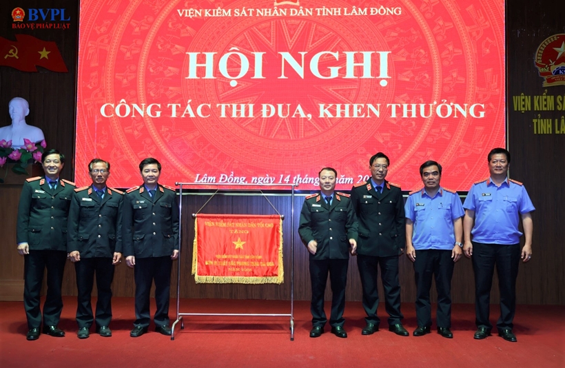 | Tập thể Lãnh đạo VKSND tỉnh Lâm Đồng nhận Cờ thi đua ngành Kiểm sát nhân dân. |