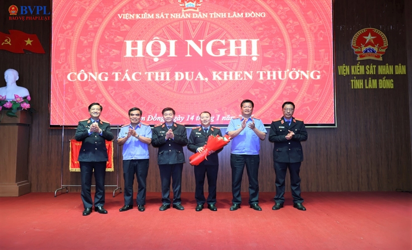 | Đồng chí Võ Quang Trung- Phó Viện trưởng VKSND tỉnh trao tặng danh hiệu tập thể lao động xuất sắc năm 2025 của Viện trưởng VKSND tối cao cho Văn phòng, Phòng 1 VKSND tỉnh và VKSND Khu vực 1, 5, 6 và Khu vực 10- Lâm Đồng. |