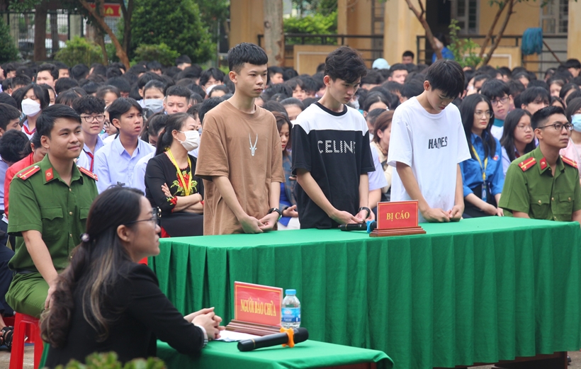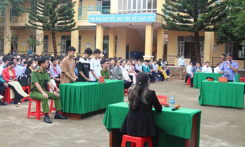 | Các vai diễn Hội đồng xét xử, Kiểm sát viên, Luật sư, bị cáo...do Chi đoàn VKSND tỉnh chủ trì, phối hợp cùng các em học sinh thực hiện. |