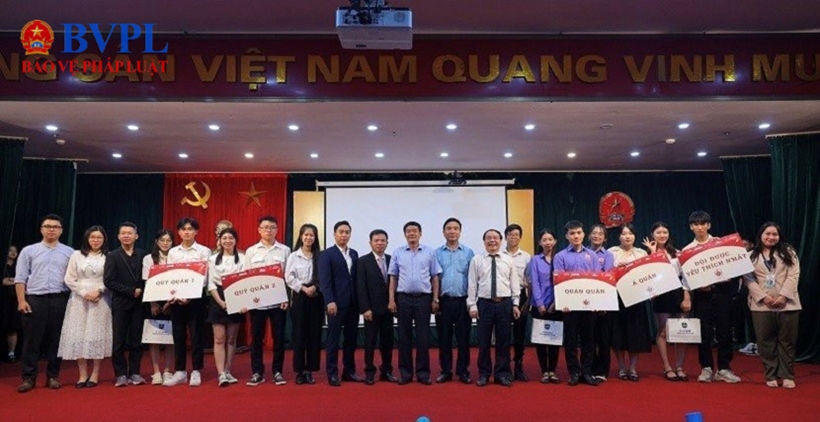 | PGS.TS Mai Đắc Biên – Phó Hiệu trưởng Trường ĐH Kiểm sát Hà Nội trao giải Quán quân cho Đội Hula. |