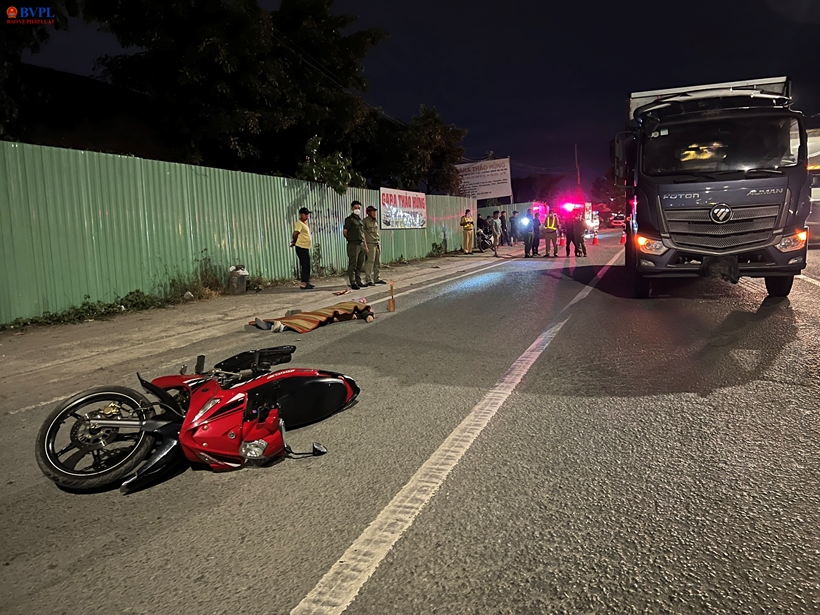 Va chạm làm cho anh C. ngã xuống đường bị bánh xe tải cán tử vong tại chỗ. Sau tai nạn, chiếc xe tải chạy thêm vài chục mét rồi tấp vào lề.