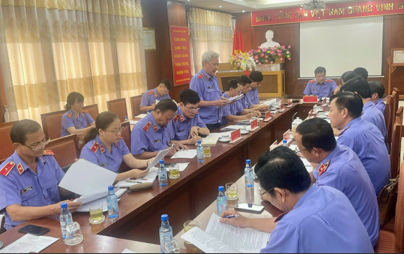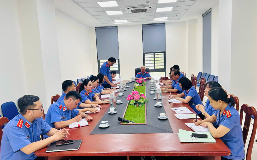 | Lãnh đạo Viện tổ chức họp rút kinh nghiệm đối với cán bộ, Kiểm sát viên trong đơn vị sau phiên tòa. |