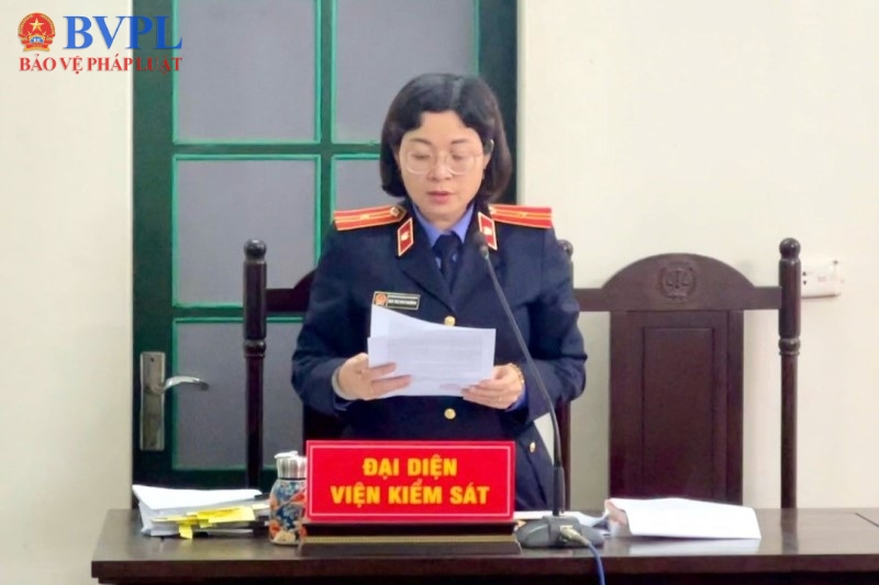 | Kiểm sát viên phát biểu tại phiên tòa. |