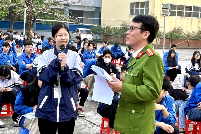 Buổi tuyên truyền còn kết hợp phần giao lưu, trao đổi, giải đáp thắc mắc của học sinh về các quy định pháp luật liên quan, tạo không khí cởi mở, gần gũi, giúp các em tiếp cận kiến thức pháp luật một cách hiệu quả, thiết thực.