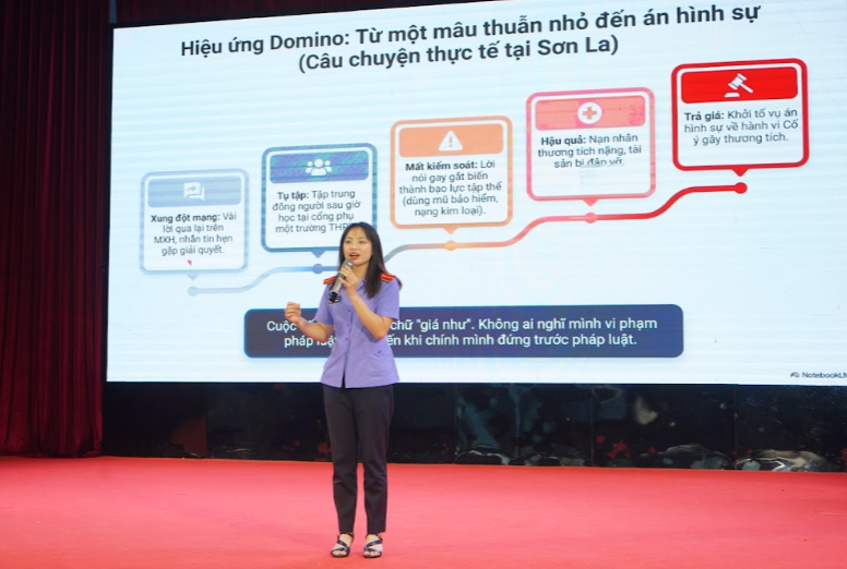 Phát biểu khai mạc, đồng chí Vũ Thị Tố Nga - Phó Viện trưởng VKSND khu vực 1 nhấn mạnh ý nghĩa quan trọng của công tác tuyên truyền pháp luật trong nhà trường, đặc biệt là đối với công tác phòng, chống bạo lực học đường - vấn đề đang nhận được sự quan tâm của toàn xã hội. Đồng chí mong muốn thông qua chương trình, các em học sinh sẽ được trang bị thêm kiến thức pháp luật, kỹ năng cần thiết để ứng xử phù hợp, góp phần xây dựng môi trường học tập văn minh, an toàn.