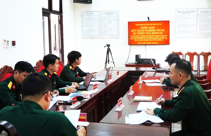 Ngày 13/3, Viện kiểm sát quân sự (VKSQS) khu vực 52- Quân khu 5 đã tổ chức cho cán bộ, Kiểm tra viên, Kiểm sát viên họp rút kinh nghiệm sau khi tham dự phiên tòa xét xử sơ thẩm vụ án hình sự đối với bị cáo Trần Thị T. cùng đồng phạm, phạm tội “Lợi dụng các quyền tự do dân chủ xâm phạm quyền, lợi ích hợp pháp của cá nhân” quy định tại khoản 1 Điều 331 và tội “Giữ người trái pháp luật” quy định tại các điểm c, đ khoản 2 Điều 157 Bộ luật Hình sự.