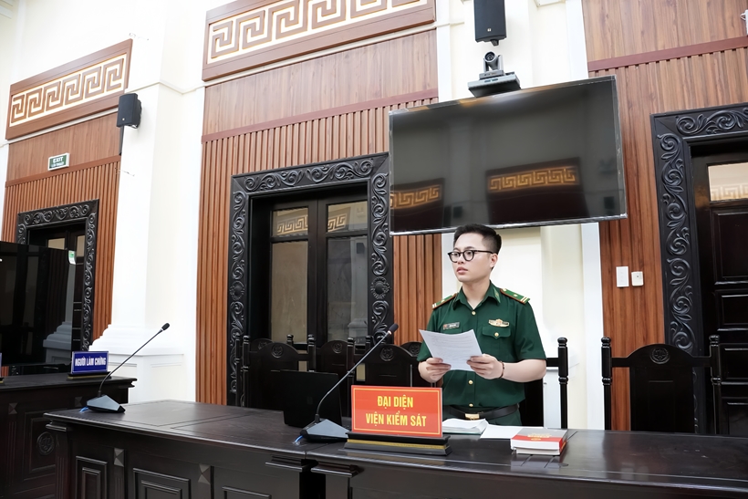 | Đại diện VKS Quân sự Khu vực 2 Bộ đội Biên phòng thực hành quyền công tố và kiểm sát xét xử tại phiên tòa. |