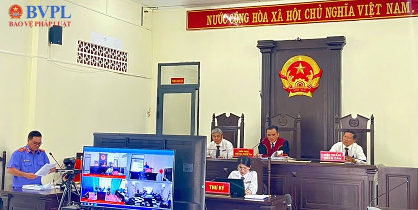 | Toàn cảnh phiên tòa trực tuyến tại điểm cầu chính. |