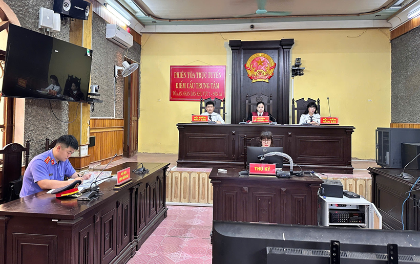 Phiên tòa được kết nối trực tuyến với điểm cầu thành phần tại Phân trại tạm giam khu vực Mường La và các điểm cầu theo dõi của TAND hai cấp tỉnh Sơn La.