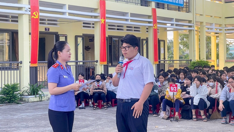 VKSND khu vực 10, TP Đà Nẵng đã tổ chức buổi tuyên truyền, phổ biến pháp luật về phòng, chống hành vi chế tạo, sản xuất, mua bán, tàng trữ và sử dụng pháo nổ tại trường Trung học cơ sở Võ Như Hưng, thuộc Điện Bàn Đông, TP Đà Nẵng.