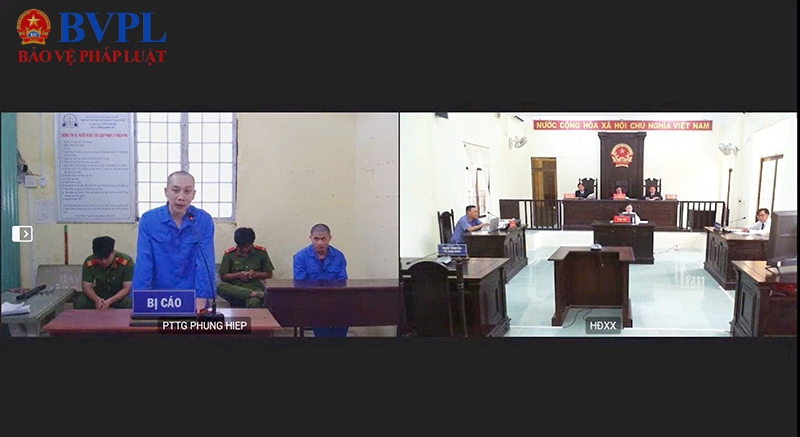 Phiên tòa được kết nối qua đường truyền trực tuyến với Phân trại tạm giam Phụng Hiệp, Trại tạm giam số 3 - Công an TP Cần Thơ.
