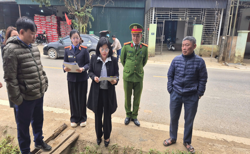 | Các cơ quan chuyên môn tiến hành đo đạc diện tích đất tranh chấp và xem xét thực địa. |