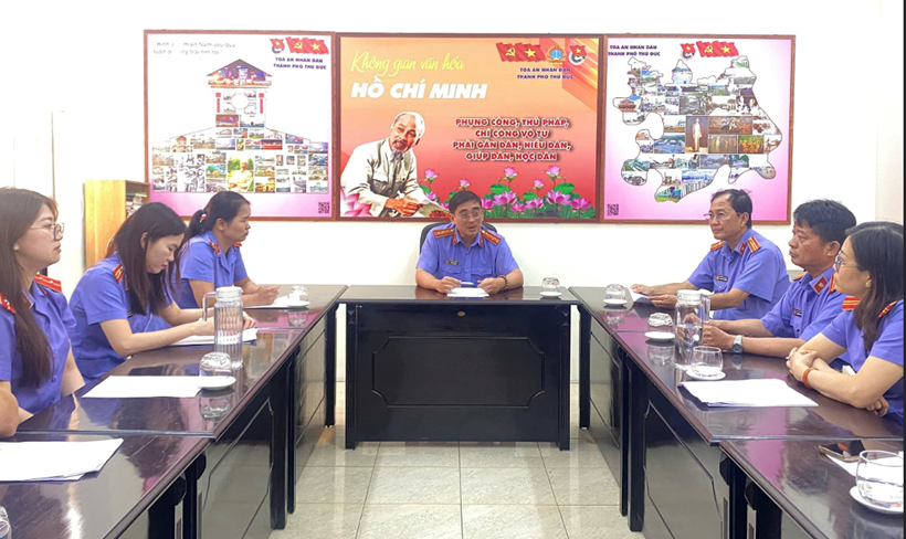 | Phiên họp rút kinh nghiệm sau phiên tòa. |