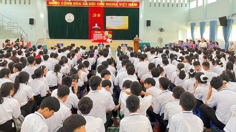Một buổi tuyên truyền pháp luật cho học sinh. |