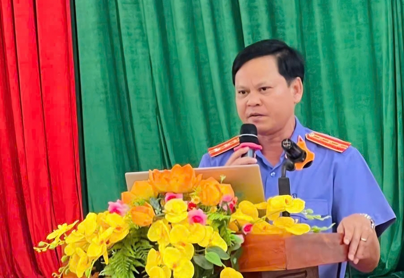 Đồng chí Lê Quang Hòa, Viện trưởng VKSND khu vực 3 Thành phố Huế trực tiếp tuyên truyền pháp luật. |