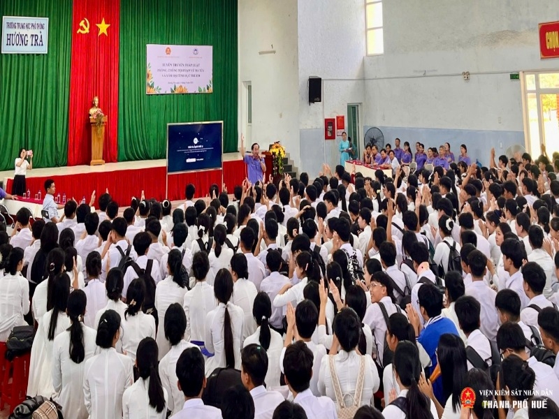 Gần 850 em học sinh của Trường THPT Hương Trà tham gia buổi tuyên truyền pháp luật |