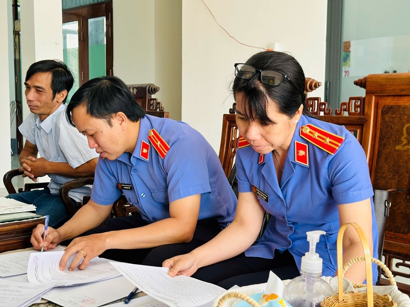Đoàn xác minh gồm Kiểm sát viên VKSND Khu vực 4, Chấp hành viên Phòng Thi hành án dân sự Khu vực 4 cùng đại diện chính quyền địa phương, bảo đảm sự tham gia đầy đủ của các chủ thể theo quy định của pháp luật.