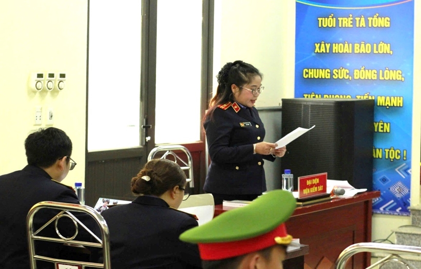 | Kiểm sát viên công bố cáo trạng tại phiên tòa. |