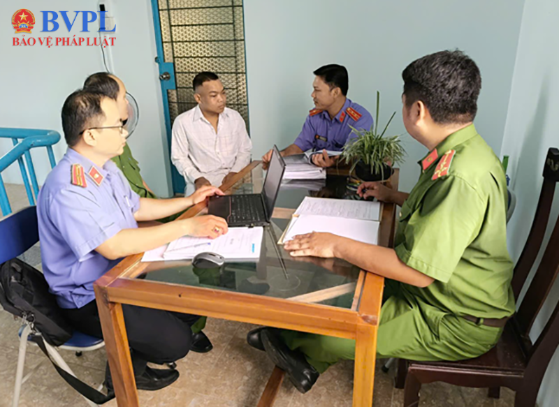 Đồng chí Nguyễn Công Khánh - Phó Viện trưởng, trực tiếp gặp hỏi người bị kết án đang được tạm đình chỉ tại Ủy ban nhân dân xã Vĩnh Thạnh, TP Cần Thơ. |