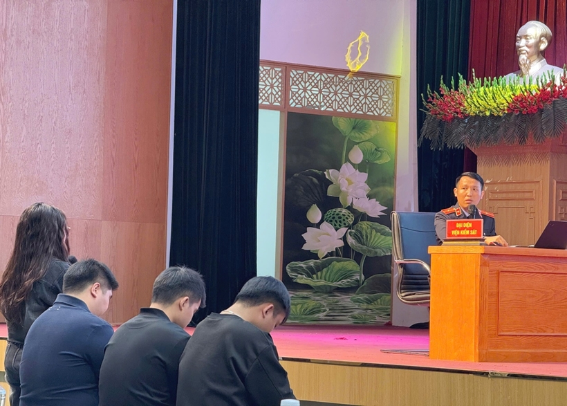 | Kiểm sát viên công bố bản cáo trạng truy tố các bị cáo. |