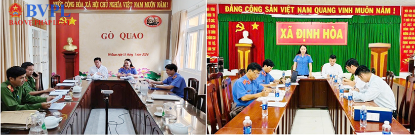 | Quang cảnh buổi trực tiếp kiểm sát tại UBND xã Gò Quao và Định Hòa. |