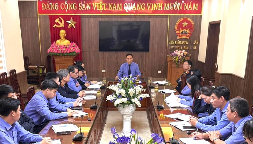 | Đồng chí Nguyễn Văn Bốn, Viện trưởng VKSND khu vực 5 chủ trì cuộc họp rút kinh nghiệm. |