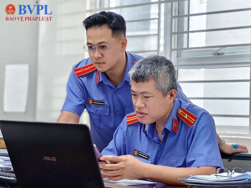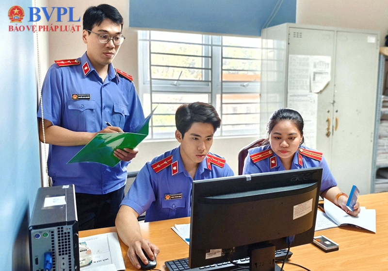 | Thành viên Đoàn kiểm tra đang tiến hành kiểm tra dữ liệu số hóa trên phần mềm Quản lý án Hình sự của VKSND TP. Hồ Chí Minh. |