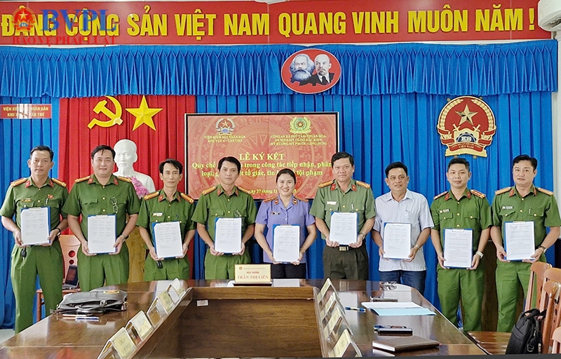 Mới đây, VKSND Khu vực 6 TP Cần Thơ đã chủ trì ký kết “Quy chế phối hợp trong công tác tiếp nhận, phân loại, giải quyết tố giác, tin báo về tội phạm” với Công an các xã.
