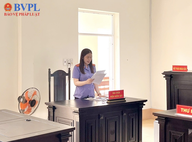 | Kiểm sát viên phát biểu tại phiên xét xử. |